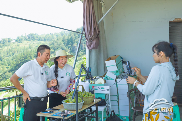 龍角鎮(zhèn)木甫村海拔適中,日照充足,產(chǎn)出的青脆李皮薄肉厚、酸甜爽脆。今年,當?shù)匾?guī)模化種植青脆李約600畝,年產(chǎn)量預(yù)計可達5萬斤左右。為幫助農(nóng)戶拓寬銷售渠道,龍角鎮(zhèn)政府聯(lián)合“云陽村播助農(nóng)團”直播團隊開展電商銷售,組織本當?shù)馗刹可钊胩镩g地頭,化身主播,把手機變?yōu)椤靶罗r(nóng)具”,讓新鮮采摘的李子通過互聯(lián)網(wǎng)賣到全國各地。
