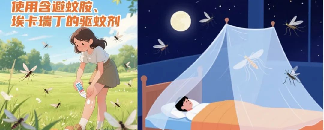 避蚊胺(DEET)、驅(qū)蚊酯(IR3535)成分的驅(qū)蚊噴霧(兒童需選低濃度)等。