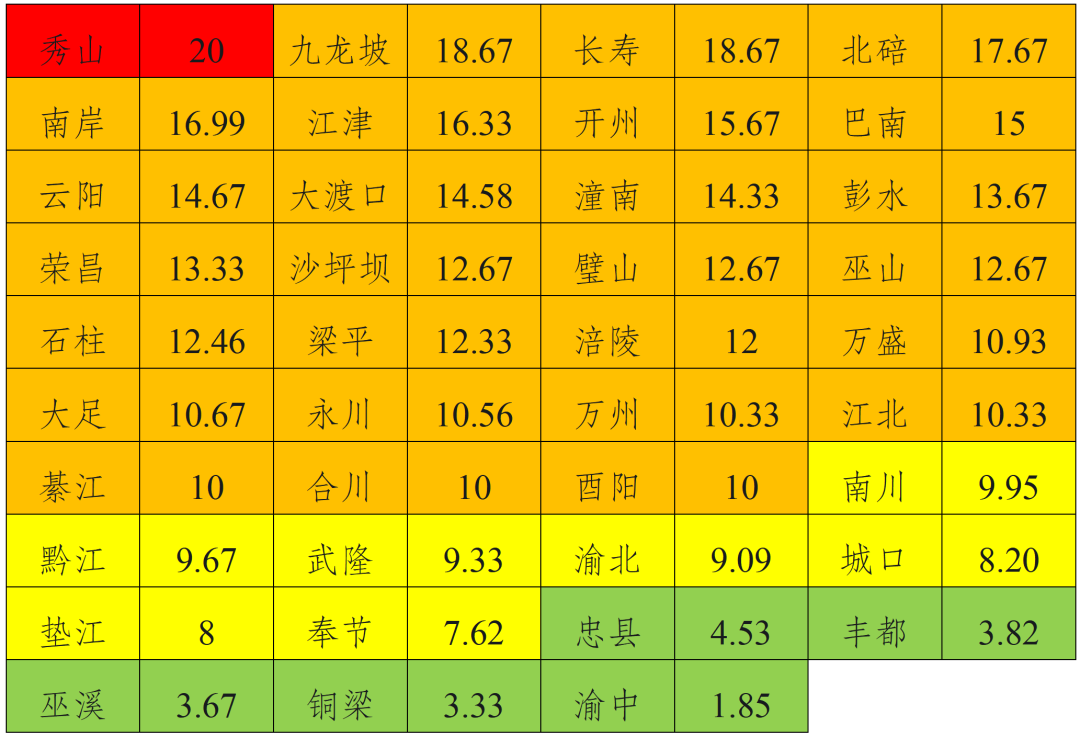 各區(qū)縣布雷圖指數(shù)請(qǐng)通過(guò)下面表格查詢(從左到右,由高到低排序):