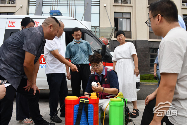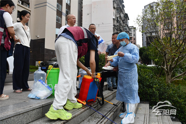 在立新社區居民樓內,專家們俯身查看樓道角落、陽臺積水處,仔細觀察水體,向街道工作人員講解:“這些就是伊蚊的幼蟲,積水不清理,一周左右就會孵化成成蚊,必須及時清除才能切斷傳播鏈。” 隨后,專家們現場演示殺蟲劑配比,一邊稱量藥劑一邊叮囑:“按照這個比例稀釋,重點對垃圾桶周邊、綠化帶邊緣進行噴灑,既能保證消殺效果,又能減少對環境影響。”