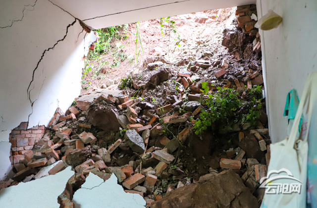 剛站穩(wěn)腳,氣還沒喘勻,就聽到一聲沉悶的巨響從余秀珍家方向傳來。回頭望去,只見屋后山坡裂開一道大口子,上百立方米的土石夾雜著黃泥、石塊和折斷的樹木傾瀉而下,瞬間沖垮了房屋后半部分,磚瓦飛濺,一片狼藉。