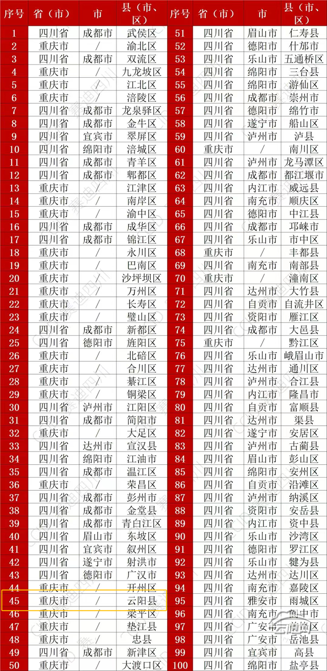 云陽縣榜上有名!