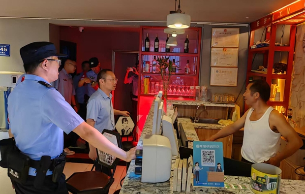 在巡邏過程中,工作隊員對各重點場所重點區域進行重點檢查,對發現的電線亂拉亂接、堵塞消防通道、電瓶車違規接電充電等安全隱患進行立行立改。同時,對轄區內賓館、麻將館、隱蔽場所進行了突擊檢查,嚴防嚴打違法犯罪。同時通過與群眾面對面交流的方式,向沿街門店和往來群眾講解防火、防盜、防電信詐騙等安全知識,提醒群眾注意用火用電、交通安全等事項,增強居民的自我保護意識。