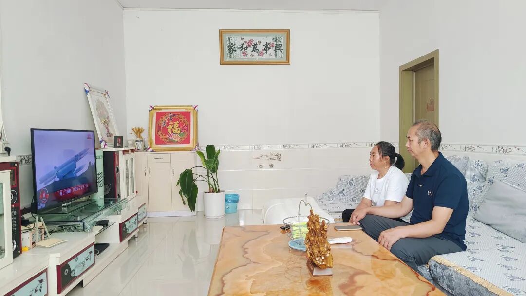故陵鎮現役軍人譚龍超家屬觀看閱兵式