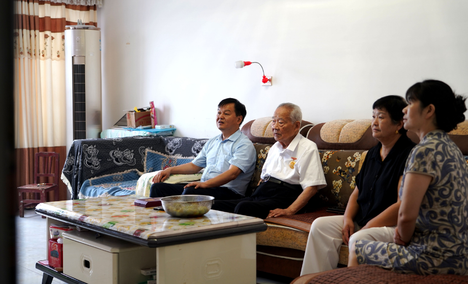 現年102歲的抗戰老同志陳治界和家屬一同觀看閱兵式