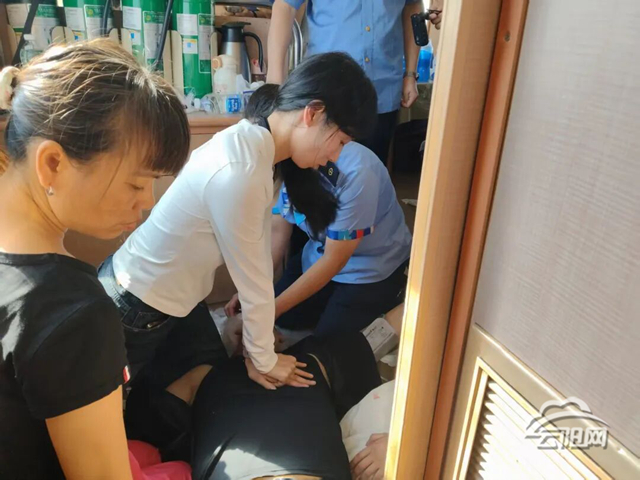在不足1.2米寬的車廂過(guò)道中,她雙手交疊、反復(fù)按壓,以每分鐘上百次的頻率持續(xù)兩小時(shí)。汗水浸透衣衫,雙臂顫抖不止,她卻未有一刻放緩節(jié)奏。沒(méi)有支撐、沒(méi)有替換,只有一聲聲清晰的計(jì)數(shù)和一次次精準(zhǔn)的發(fā)力。那不是普通的兩小時(shí)跪地,是一場(chǎng)以專業(yè)意志與體力極限對(duì)抗的生命拉鋸戰(zhàn)。