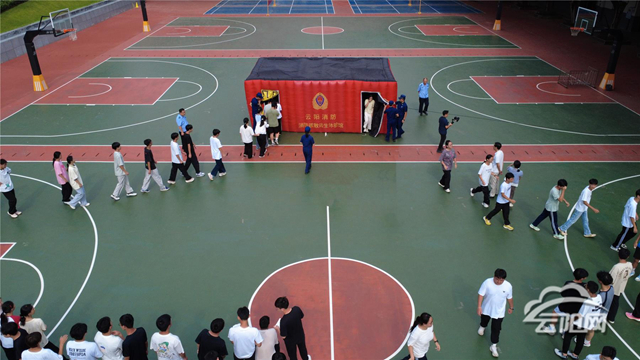 為進一步增強體驗感,演練還引入了充氣式消防疏散逃生體驗館。在彌漫模擬煙霧的黑暗通道中,學生們在宣傳員的指揮下彎腰前行、扶墻探路,真實感受火場環境的復雜性與有序逃生的必要性。高一學生田欽文在體驗后表示:“這次演練讓我更加意識到消防安全的重要性。今后我不僅自己會注意日常隱患,也會把學到的消防知識和器材操作方法分享給身邊的人。”