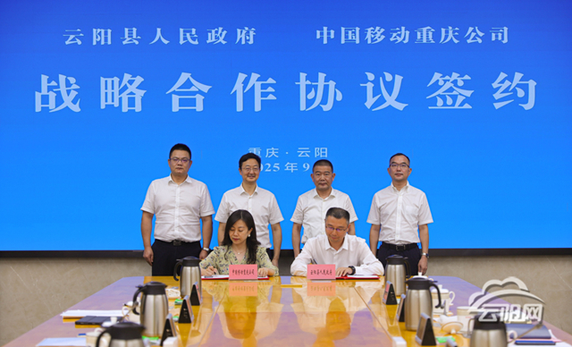 云陽網訊(記者 李歆宇 楊力)9月16日,云陽縣人民政府與中國移動重慶公司簽署戰略合作協議。縣委書記陳道彬與中國移動重慶公司黨委書記、董事長、總經理夏泳一行座談并見證簽約。