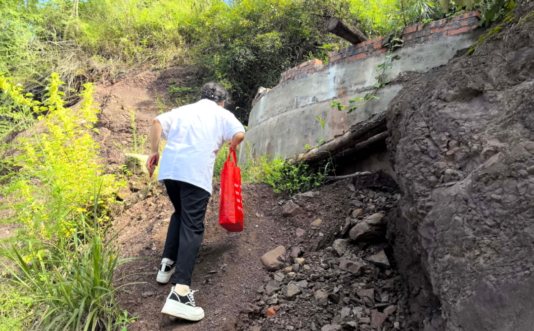 到了車路的盡頭,還有一段更險的小路,就像是從崖頂斜掛下去的。彭澤敏背著藥箱,一步一滑,心驚膽戰地“梭”到老人家門口。