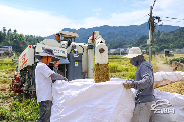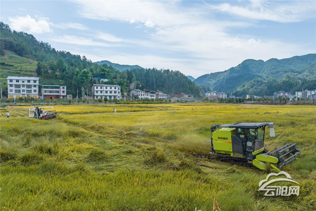 云陽網訊(記者 譚啟云劉琴)秋高氣爽,稻谷飄香。眼下,我縣10萬畝高山水稻進入收獲期。當地搶抓農時組織農機開鐮收割,田間地頭,一派繁忙景象。