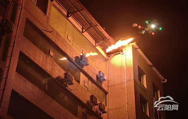 在處理現場,經過前期有效的準備工作,救援隊員操作無人機升空,對準馬蜂窩噴出長長的火焰,五分鐘后,馬蜂窩燃燒的灰燼逐漸剝離掉落,無人機方才緩緩降落。為防止馬蜂在原址筑巢再次擾民,消防人員對剩余殘留的蜂巢進行清理,向蜂窩位置噴灑殺蟲劑,徹底解決隱患。