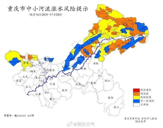 重慶市水利局和重慶市氣象局2025年10月16日16時聯合發布中小河流漲水風險提示: