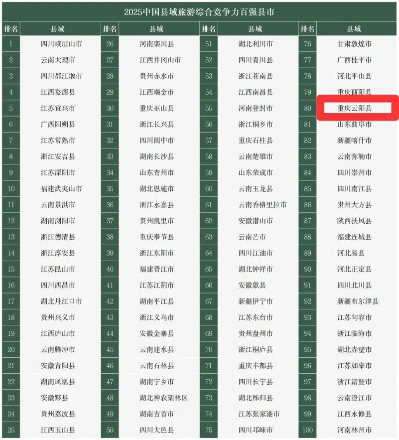 2025中國縣域旅游綜合競爭力百強(qiáng)縣市
