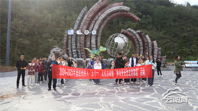 上午9點半,參與家庭準時抵達首站——云陽恐龍化石遺址館。在老師的組織下,50戶家庭被分為五個小組,有序領取紀念品后開始了參觀之。面對館內壯觀的恐龍化石墻,孩子們充滿了好奇與驚嘆,他們時而駐足觀察,時而小聲交流,歡快的笑聲在展廳內回蕩。