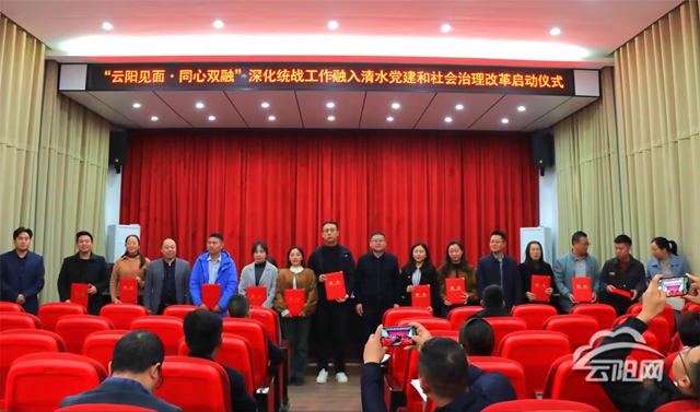 活動現(xiàn)場,“同心社區(qū)”揭牌儀式順利舉行,與會領(lǐng)導共同為清水土家族鄉(xiāng)“同心社區(qū)”、“云陽新專聯(lián)清水工作站”、“同心·法律援助站”、“清水土家族鄉(xiāng)火埠村直播電商村播電商學院”進行了集中揭牌,一系列服務平臺的落地,將進一步完善我鄉(xiāng)基層服務體系,拓寬服務群眾和企業(yè)的渠道。同時,活動為“同心服務隊隊員”頒發(fā)了聘書,以轄區(qū)內(nèi)優(yōu)秀黨外人士為主體的服務隊伍正式組建,為后續(xù)開展精準化服務奠定了人才基礎。