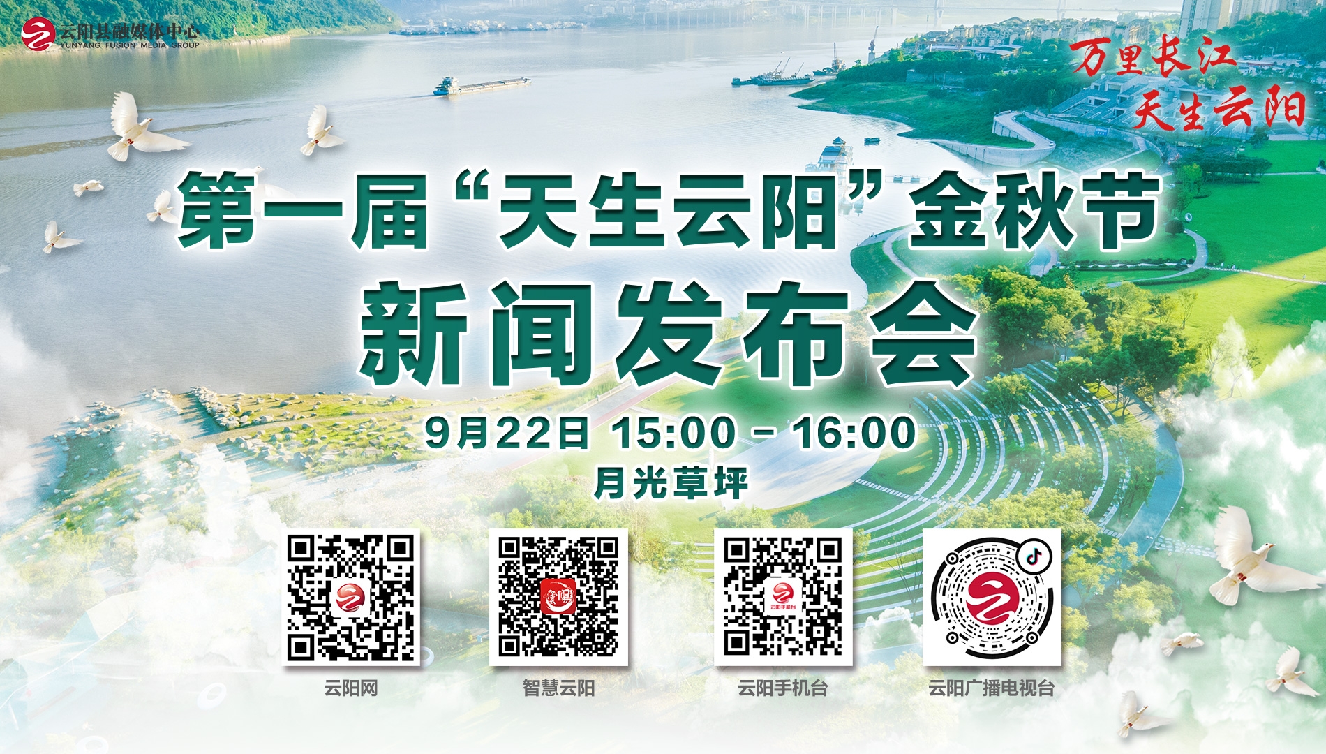 9月22日,云陽(yáng)在環(huán)湖綠道月光草坪舉行新聞發(fā)布會(huì),宣布第一屆“天生云陽(yáng)”金秋節(jié)開(kāi)幕……