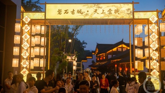 5月4日,夜幕降臨,重慶市云陽縣磐石城遺址公園“天上云街”燈火通明,龍脊嶺林間的點點星光,穿插著人們的歡聲笑語,勾勒出山城夜經濟的鮮活畫卷。
