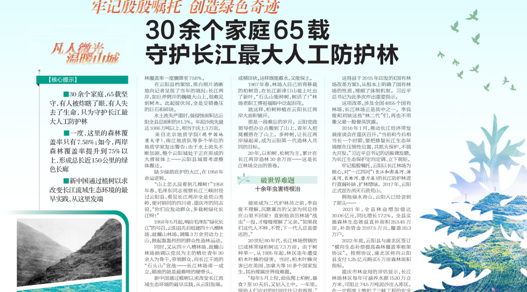 重慶日報深度報道《牢記殷殷囑托 創(chuàng)造綠色奇跡 30余個家庭65載守護長江最大人工防護林》