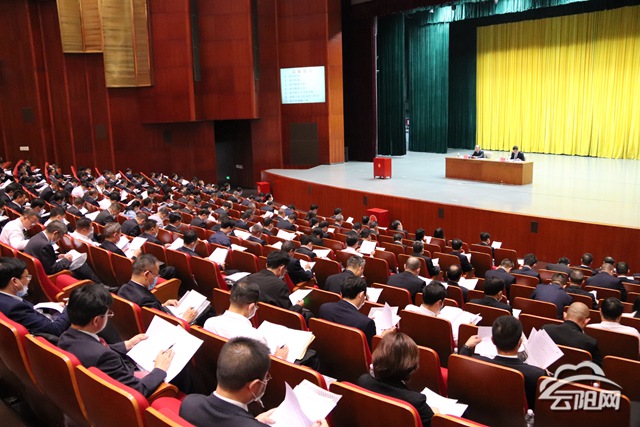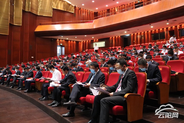 縣委書記張學(xué)鋒作云陽縣2019年選人用人工作情況報(bào)告,縣委副書記、縣長覃昌德主持會(huì)議。